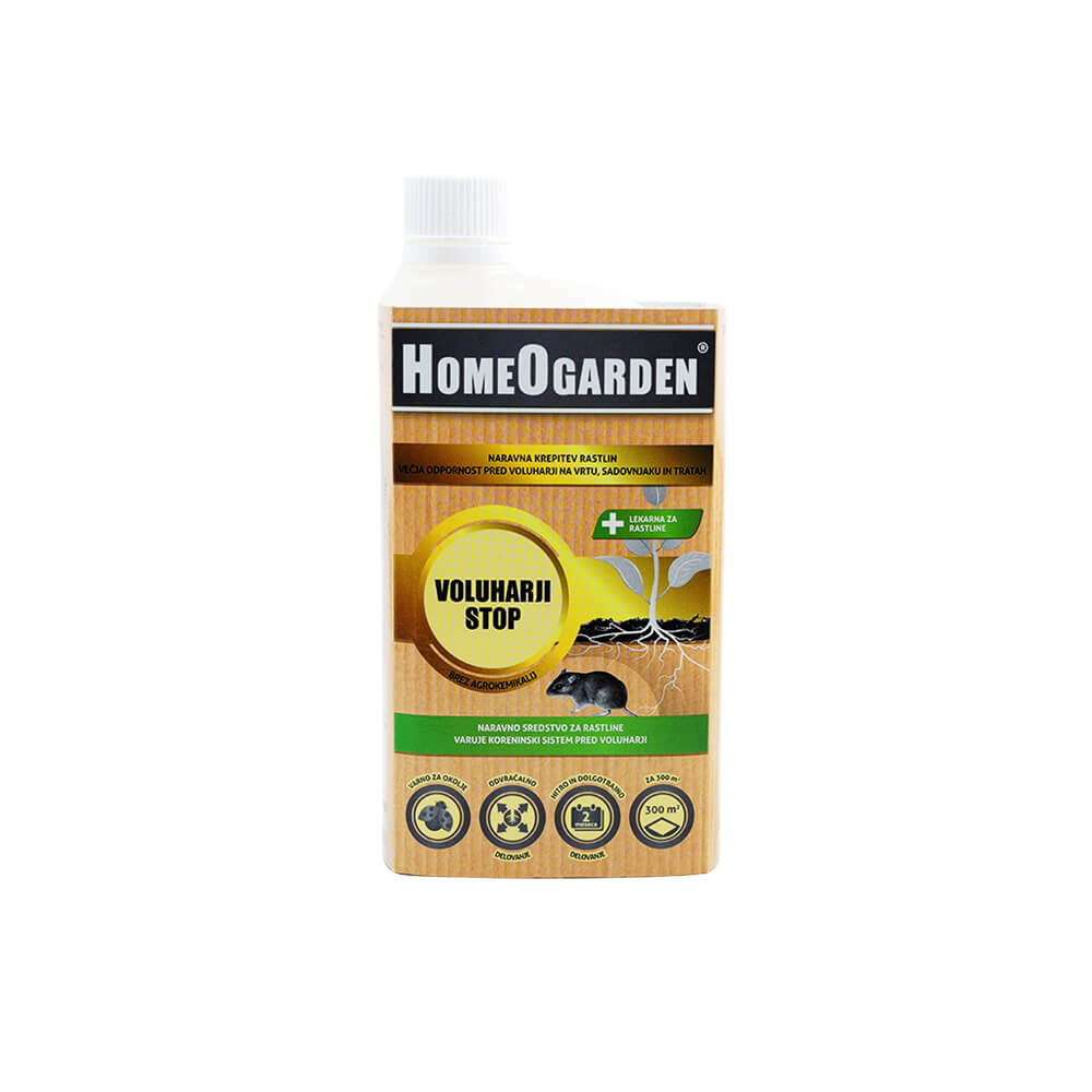 Sredstvo proti voluharju Voluhar STOP, vsebuje 100% naravne sestavine in je certificirano za uporabo v ekološkem kmetijstvu. Pozabite na polivanje vrta z agresivnimi kemičnimi sredstvi, zažiganje dimnih patronov, ali nastavljanje strupov. Z naravnim sredstvom proti voluharju, ki učinkuje na vseh vrstah rastlin, se učinkovito in dolgotrajno znebite voluharja na enostaven in okolju prijazen način. Je namreč varen za okolje, ljudi in živali.